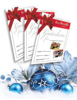 Ein Kochkurs als Geschenkidee zum Weihnachtsfest! Es müssen nicht immer Socken oder Krawatten sein. Überraschen Sie Freunde, Kollegen und Ihre Familie mit einer ungewöhnlichen Geschenkidee. Und als besonderes Highlight, erhalten Sie bei jeder Buchung (Gutschein oder Kurs) ab 250,- Euro bis zum 10.12.2025 Euro das Kochbuch Nr. 1 der Kochbühne Osnabrück als Geschenk von uns dazu. Wir wünschen Ihnen eine schöne Adventszeit!!! Thorsten Eickmann | ||||||||